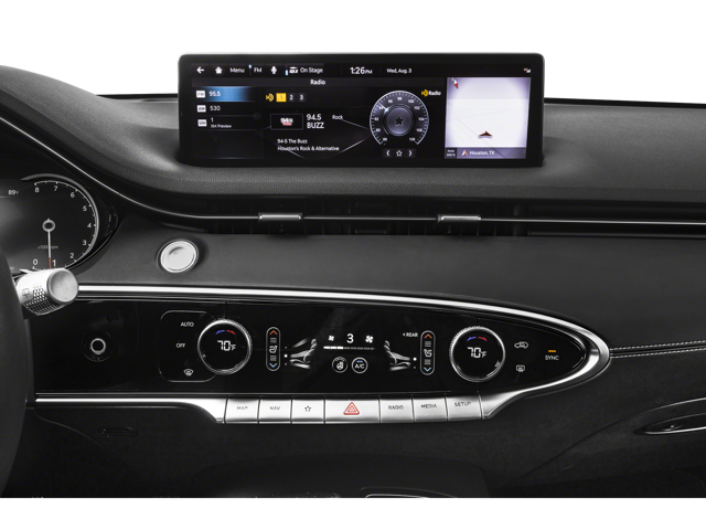 Genesis has created dual screens that give drivers everything they need in easy eye contact. Behind the bespoke steering wheel, a digital instrument screen can be configured to show the details most important to the driver. Beside it on the dash, a large 14.5 inch touch screen handles entertainment and navigation duties. Android Auto and Apple CarPlay stretch what the system can do with the apps on a driver’s smartphone.